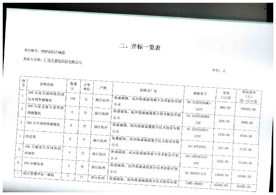 一、采購項目名稱(chēng)及編號:公共區域安全防范視頻監控系統工程采購(NNPZ2017-662E)