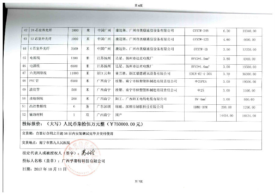 中標人:廣西孚賽特科技有限公司 中標金額:(大寫(xiě))人民幣柒拾伍萬(wàn)元整(750000.00元)