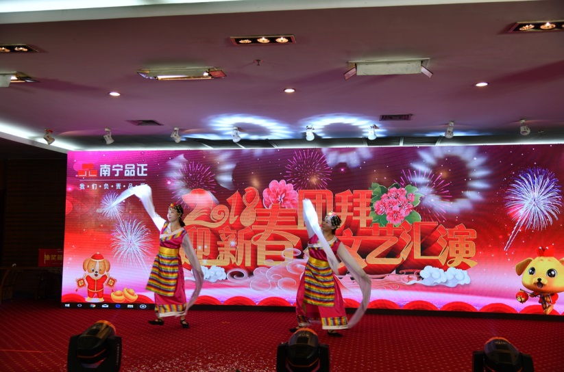 表彰大會(huì )結束后,公司舉行迎新春團拜文藝晚會(huì )。一曲手語(yǔ)舞《國家》拉開(kāi)了晚會(huì )序幕,節目?jì)热葚S富多彩,有唱歌、跳舞、古箏表演、魔術(shù)表演、京劇表演、大合唱等等。席間臺下歡聲笑語(yǔ)不斷,臺上員工載歌載舞,分享一年碩果,共同迎接新的一年。