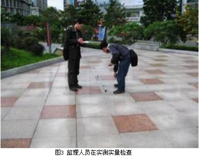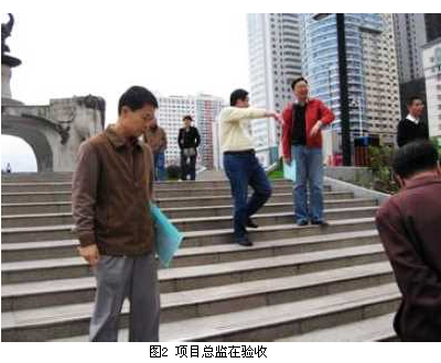 我公司負責該工程施工階段全過(guò)程監理。工程內容包括①土建維修,它又包括石材鋪裝、路面、噴泉水溝蓋板等維修;②亮化維修;③噴泉水下燈維修;④石凳設置。為更好地完成監理工作,我公司派出了素質(zhì)好、能力強的監理人員組建項目監理處,他們認真負責、踏實(shí)工作,圓滿(mǎn)完成了監理任務(wù),向政府和市民交出了一份滿(mǎn)意答卷。