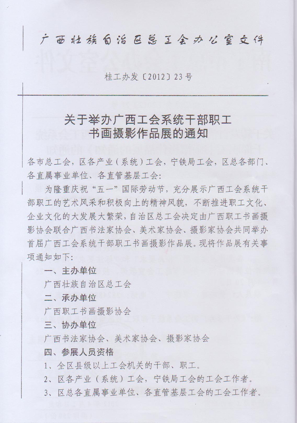 關(guān)于轉發(fā)《關(guān)于舉辦廣西工會(huì )系統干部職工書(shū)畫(huà)攝影作品展的通知》