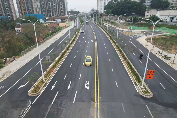 該項目建成通車(chē)后,進(jìn)一步拓展了城市脈絡(luò ),長(cháng)堽路和南梧路的車(chē)輛均可通過(guò)長(cháng)湖路北延長(cháng)線(xiàn)實(shí)現互相切換,不需要再繞行廂竹大道,極大提高通行效率,并且在一定程度上緩解廂竹大道的交通壓力。同時(shí),該項目也極大方便東溝嶺片區市民的交通出行,促進(jìn)東溝嶺片區進(jìn)一步融入城市發(fā)展圈。