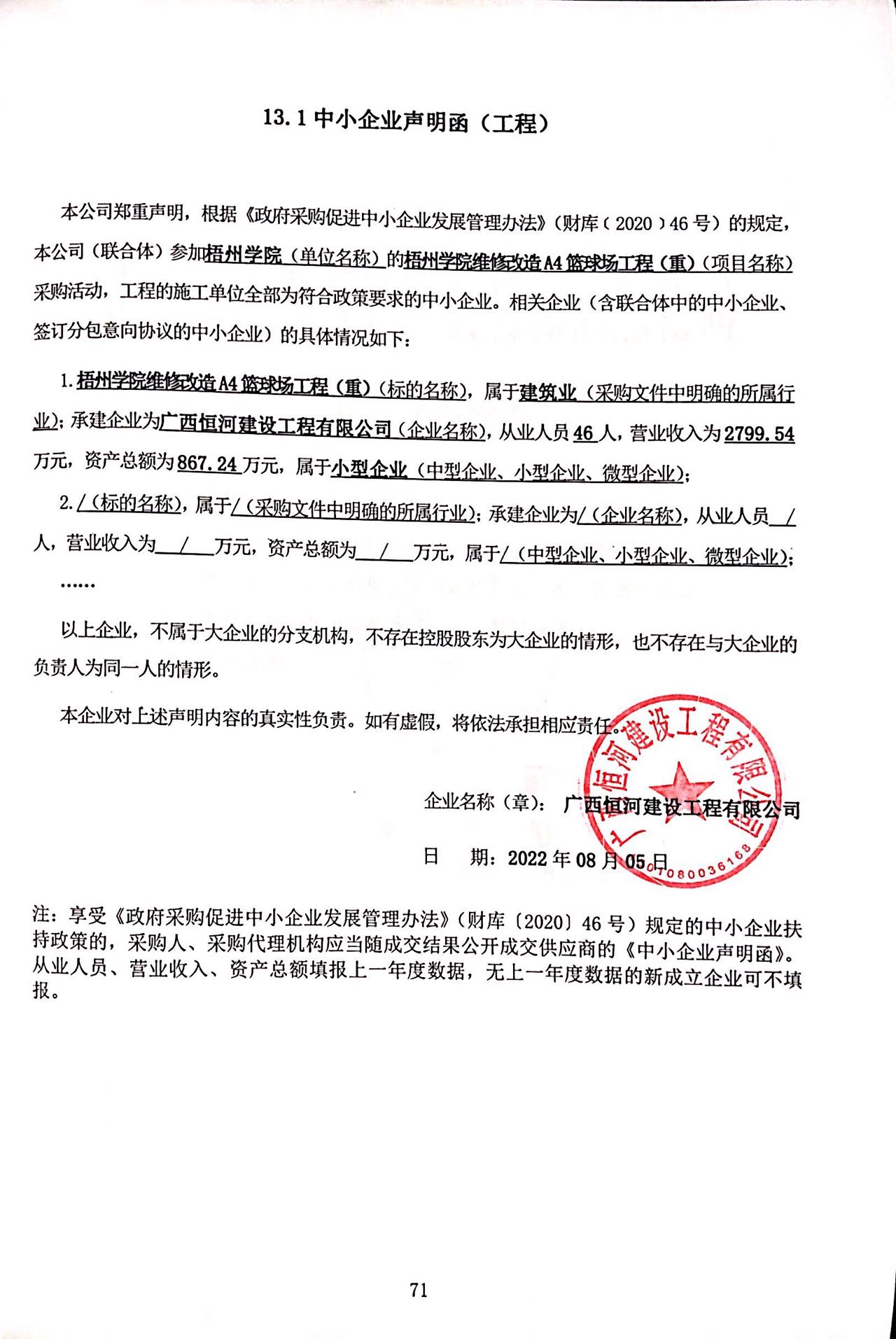 供應商名稱(chēng):廣西恒河建設工程有限公司