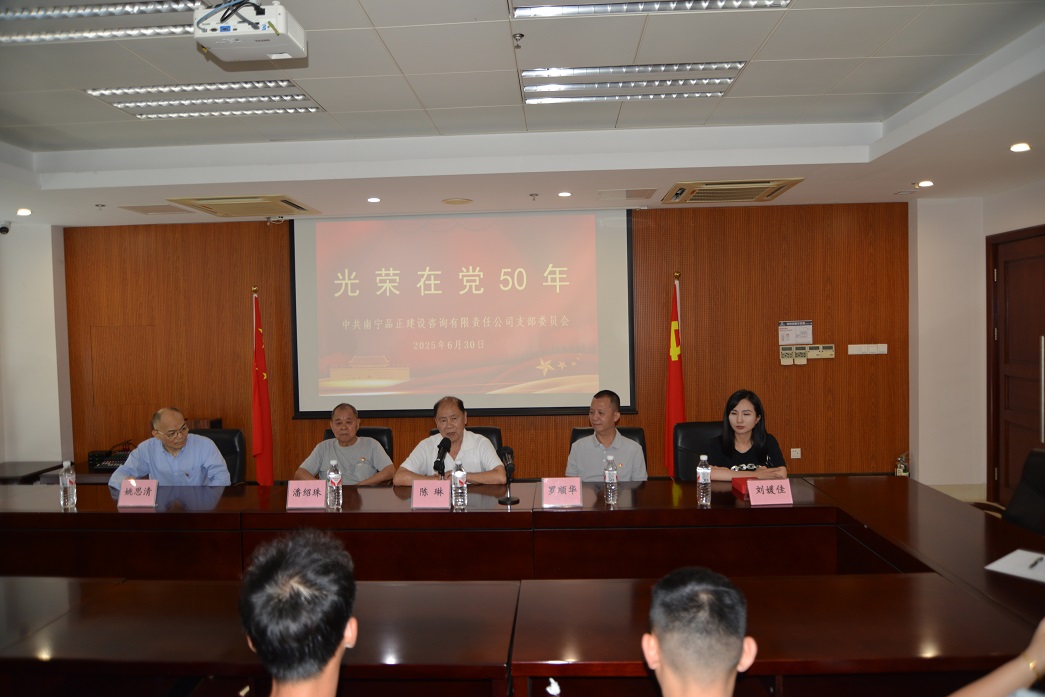 百年征程波瀾壯闊,百年初心歷久彌堅。在全國上下喜迎中國共產(chǎn)黨成立104周年之際,南寧市住建行業(yè)黨委于2025年6月30日下午到南寧品正黨支部對老黨員潘紹珠同志進(jìn)行慰問,并給其頒發(fā)“光榮在黨50年”紀(jì)念章,傳達(dá)了黨中央對老黨員的關(guān)懷肯定之意,表達(dá)了對老黨員的崇高敬意之情,激勵廣大黨員以更加高昂的姿態(tài),奮力開創(chuàng)工作新局面。