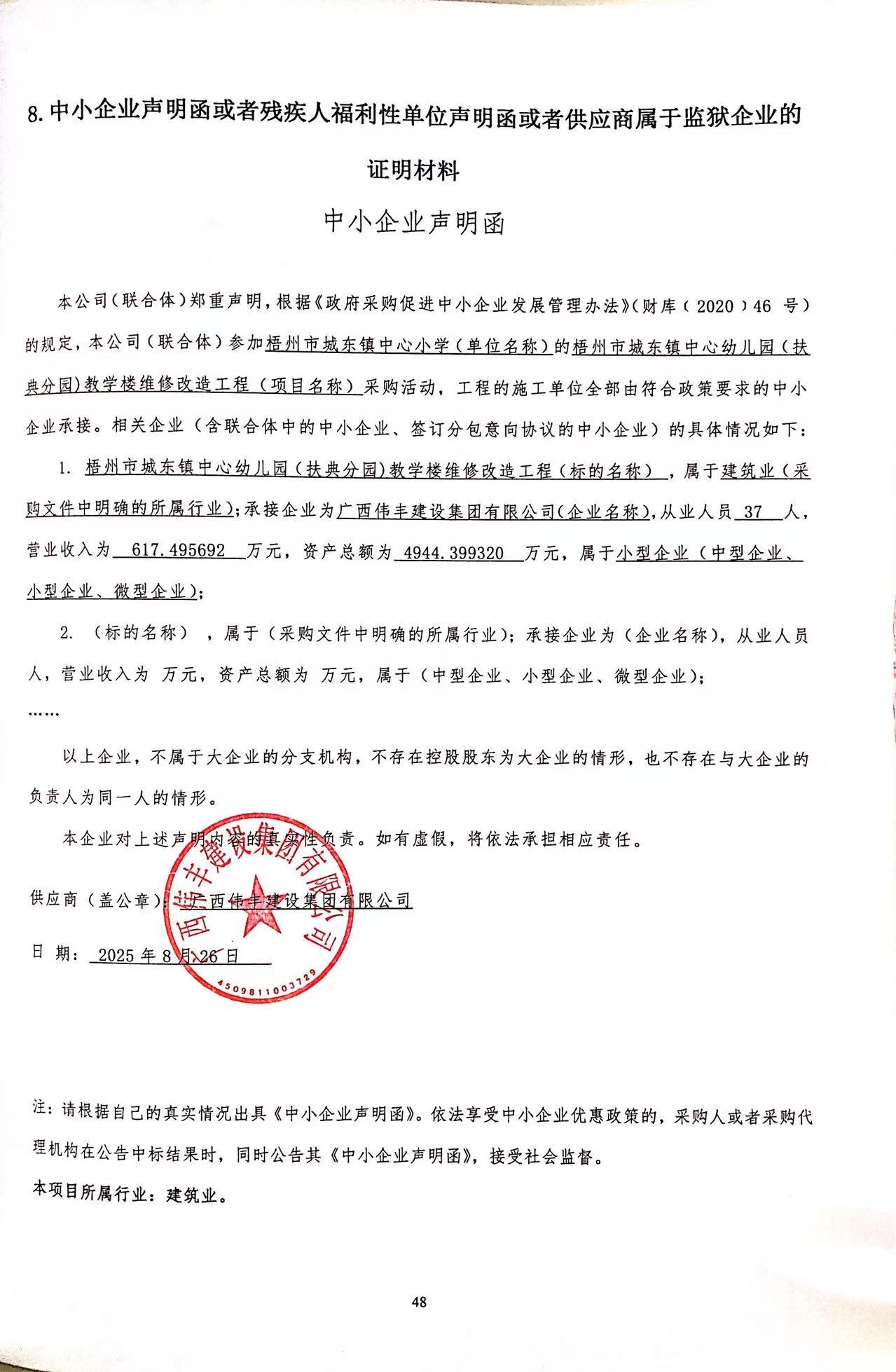 供應商名稱:廣西偉豐建設集團有限公司