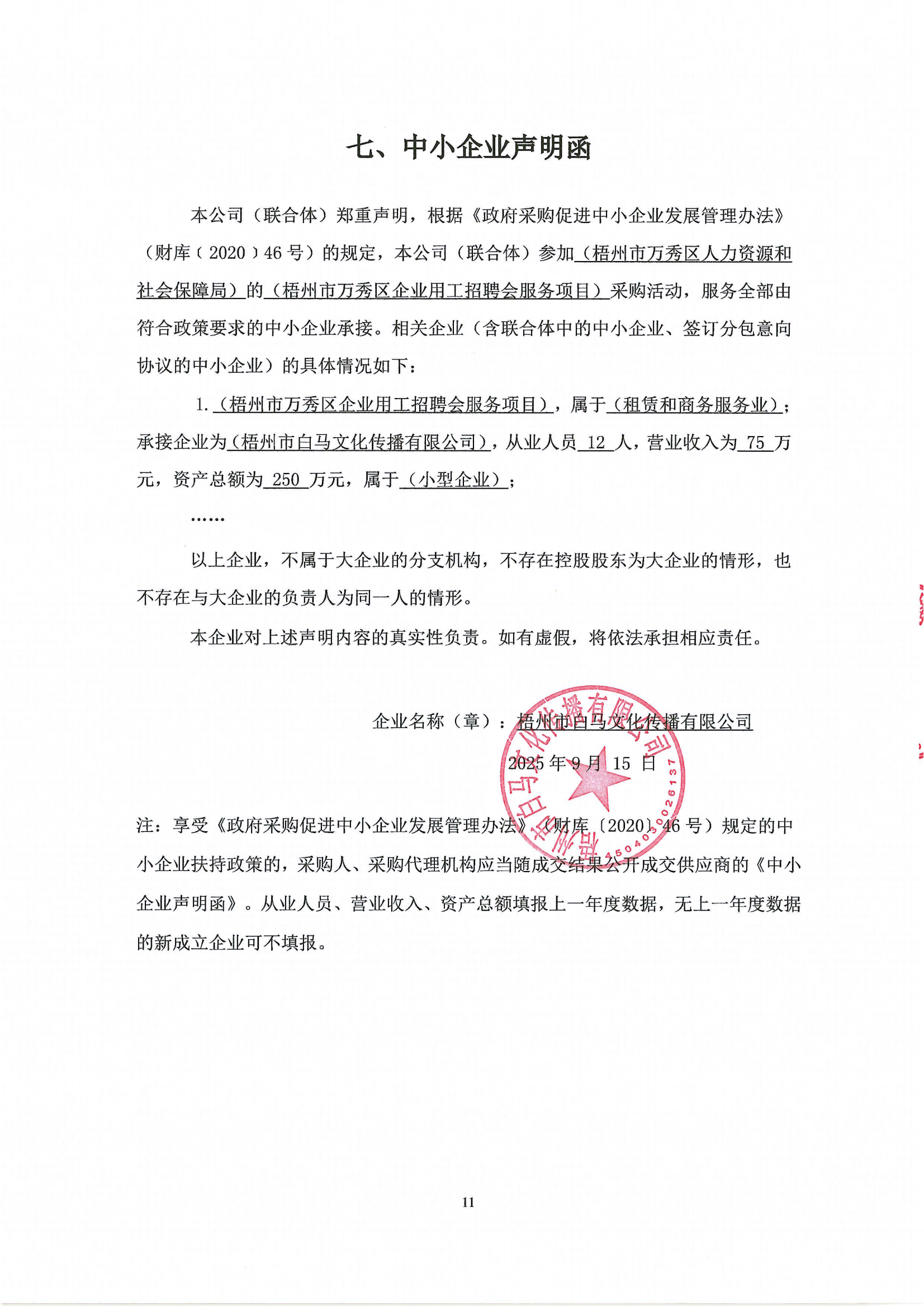 二、項目名稱:梧州市萬秀區(qū)企業(yè)用工招聘會服務(wù)項目