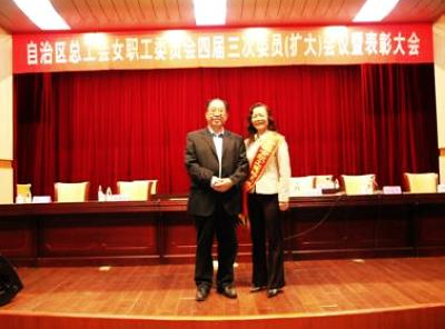 4月8日,在自治區總工會(huì )女職工委員會(huì )四屆三次委員(擴大)會(huì )議暨表彰大會(huì )上,我公司總監理工程師“南寧市五一巾幗標兵”、“全國建設系統勞動(dòng)模范”獲得者黃燕玲同志再獲“全國女職工建功立業(yè)標兵”光榮稱(chēng)號。