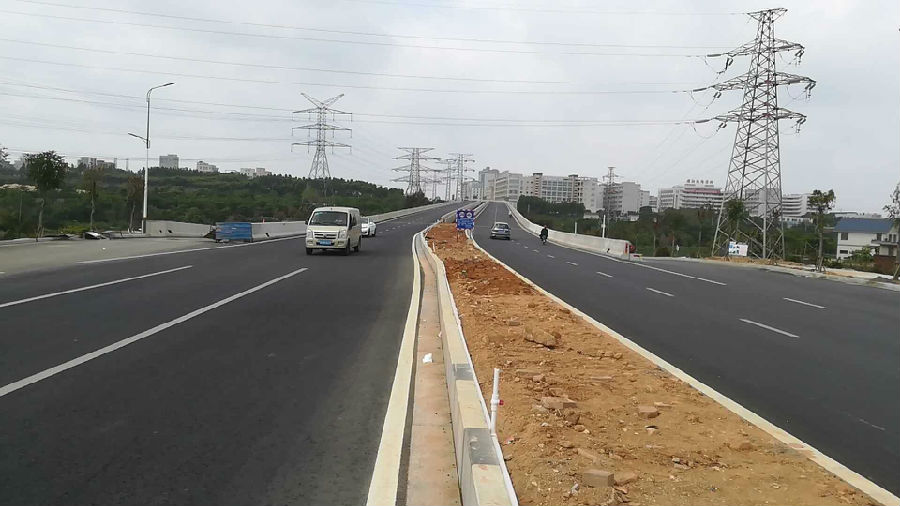 湛江市南方路道路排水及跨線(xiàn)橋新建工程橋梁人行道完成80%,南方路人行道完成50%,綠化完成75%: