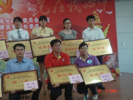 根據市城鄉建委有關(guān)文件精神,南寧品正黨支部高度重視,于“七一”前夕,精心組織開(kāi)展豐富多彩的活動(dòng)慶祝建黨90周年,取得較好成效。一是組織員工參加市紀委慶祝建黨90周年暨“南寧清風(fēng)”反腐倡廉書(shū)畫(huà)攝影作品征稿活動(dòng),公司黨支部共報送一幅書(shū)法,8幅照片,作品以慶祝建黨90周年展黨的輝煌成就,頌清風(fēng)正氣揚南寧發(fā)展成果為主題。二是組織10名員工參加市城鄉建委系統合唱隊,隊員們遵守紀律,認真排練。6月13日,市城鄉建委參加市直機關(guān)慶祝建黨90周年“綠城紅歌獻給黨”合唱比賽,獲三等獎。三是組織選派李智、陳倩、黃綿全三名員工參加市城鄉建委系統慶祝建黨90周年黨的知識競賽,獲預賽第一名,決賽優(yōu)勝獎和優(yōu)秀組織獎。四是,南寧品正黨支部與市建設建筑管理監察支隊黨支部于7月1日在金滿(mǎn)園休閑觀(guān)光果園開(kāi)展紀念建黨90周年暨“結對共建,先鋒同行”主題黨日活動(dòng)。雙方單位黨員、入黨積極分子、群眾代表等約70人參加活動(dòng)?;顒?dòng)內容有重溫入黨誓詞、唱紅歌、黨史和廉政知識搶答、文體活動(dòng)等。